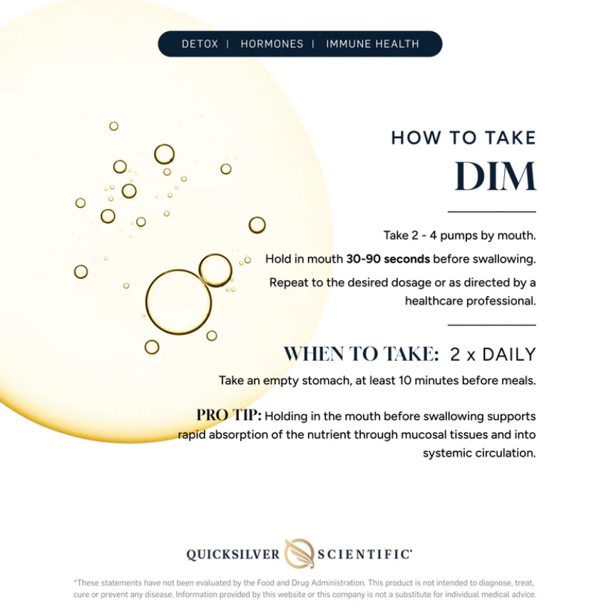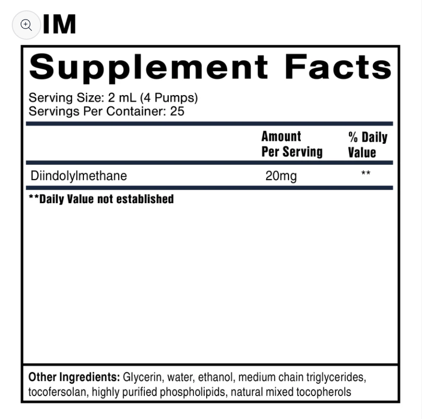 Each 2 mL of NanoEmulsified DIM delivers 20 mg of Diindolylmethane, a natural compound derived from indole-3- carbinol, found in cruciferous vegetables.