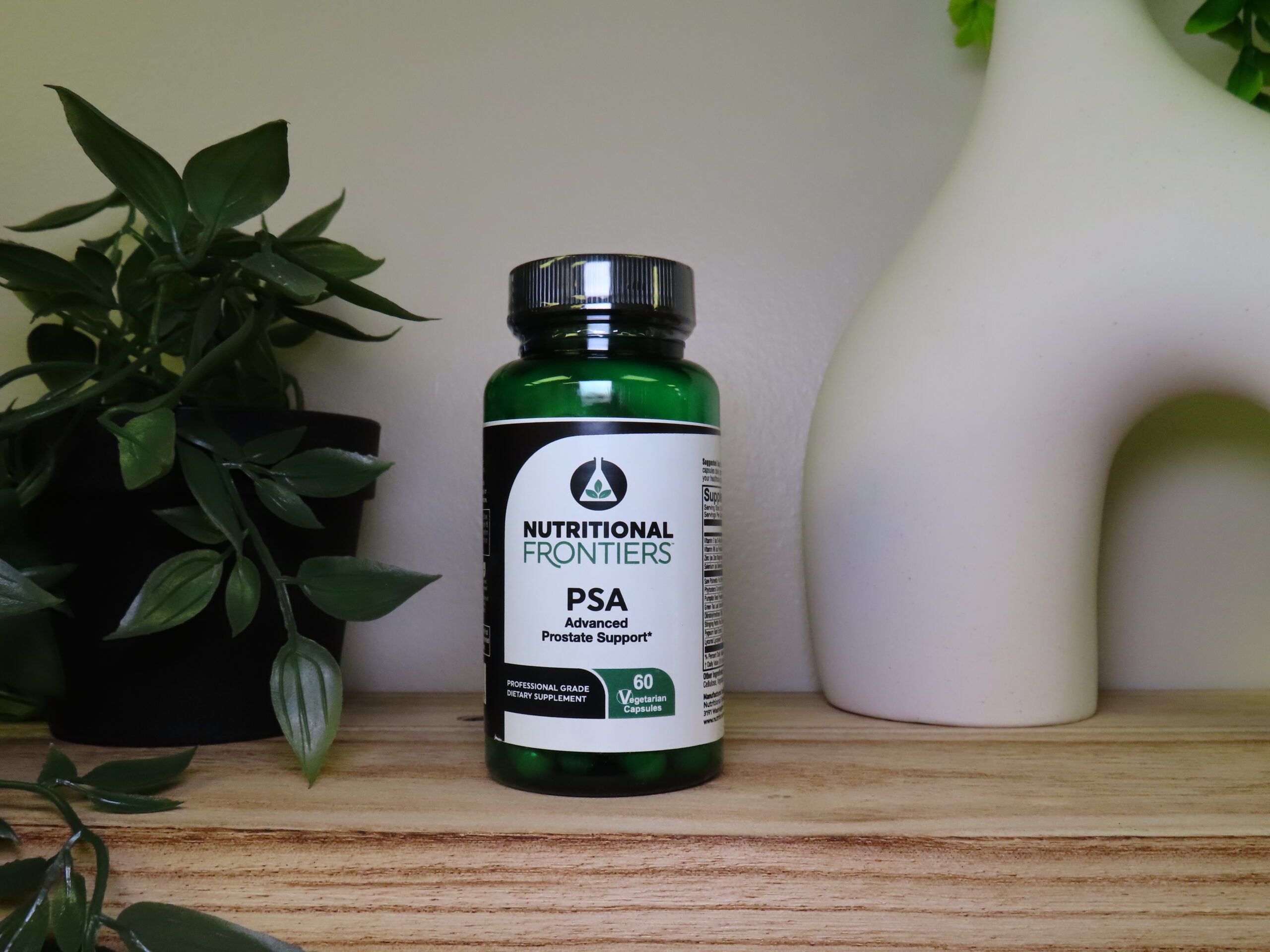 PSA contains a combination of nutrients and herbs to promote proper function of the prostate gland.* The prostate is a walnut-sized gland that plays a role in male reproduction. Many men over age 50 have some prostate enlargement, called BPH – benign prostatic hyperplasia. The enlarged gland causes obstructive symptoms like urinary frequency, urgency, and even sometimes urinary incontinence. The Nutritional Frontiers’ supplement PSA was designed to be helpful for balancing hormones, managing DHT levels, and positively affecting the enzymes that support healthy prostate size and function.